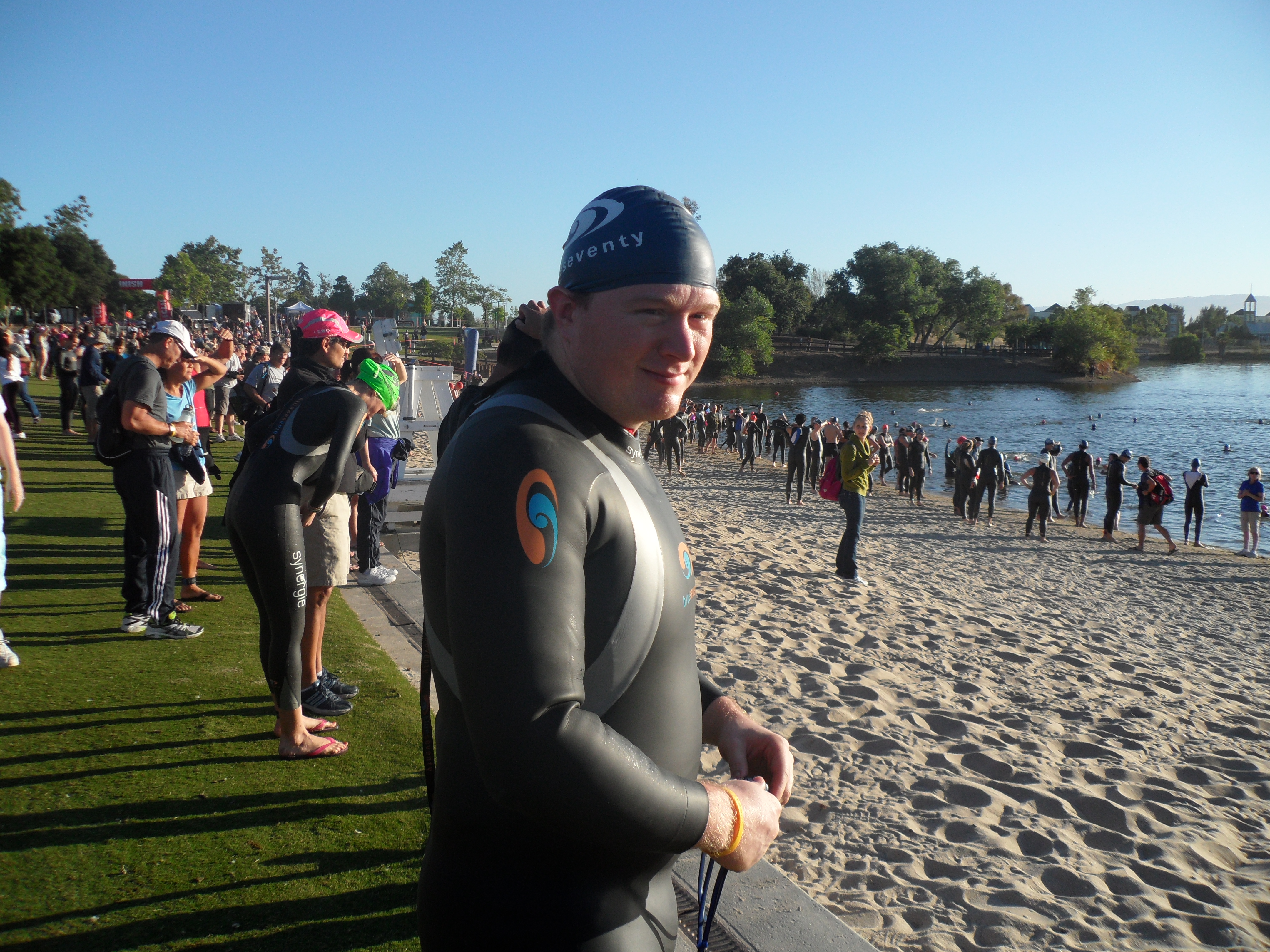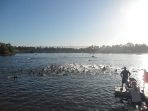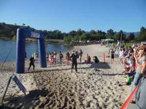 Sorry this is getting long already. The latest event I did was the Silicon Valley International Triathlon. It was my first try at the Olympic distance – 1500 Meter Swim (.93 miles) – 24.9 Mile Bike – 6.2 Mile Run. It was my second open water swim after the Stanford Treeathlon and I felt a million times more comfortable. I do have to work on my sighting a lot more but my form was much better.