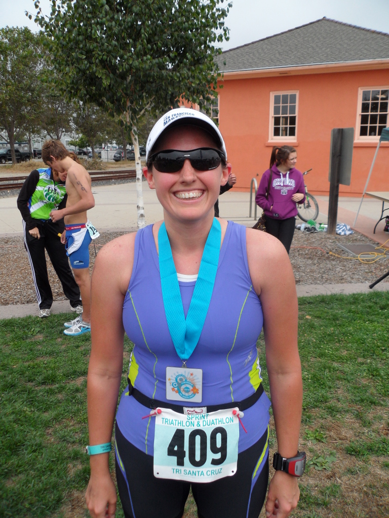 It feels good to know I’m actually making some progress on my speed and overall feeling when doing all these events. I got to race in the Santa Cruz Sprint Triathlon earlier this month and came in a few minutes earlier than my first sprint, the Stanford Treeathlon. The big differences being the swim was actually 750 meters and in the Pacific Ocean at Cowell Beach at Santa Cruz, California. The bike course was a bit slower due to some headwinds coming off from the ocean but nothing extremely drastic.