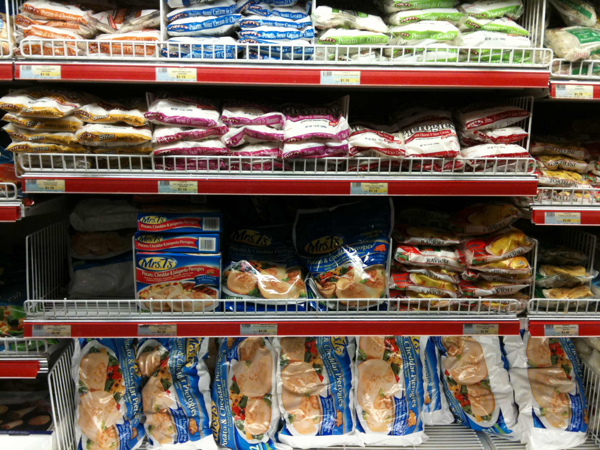 Locals are probably saying "WTF" that I posted this and chips, but it has been 5 years since I have seen this many pierogies in one place! I've seen 3 boxes of plain Mrs. T's at our local grocery shops! haha