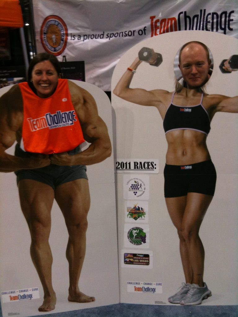 Saturday afternoon we had to go to the mandatory expo for the Rock And Roll Marathon to pick up our race packets. The bib numbers for the race were humongous! The expo was insanely large too – much larger than the cramped San Francisco Marathon expo. I think there was about 28,000 people doing the race. It was at the Sands convention center. Yes I requested this photo to be taken: