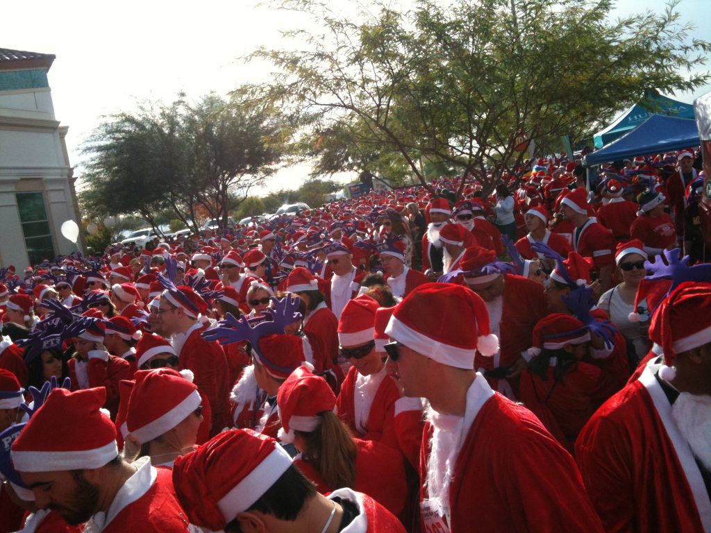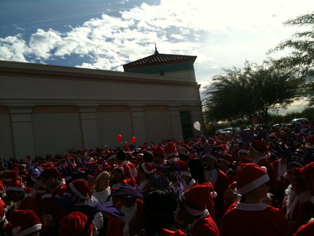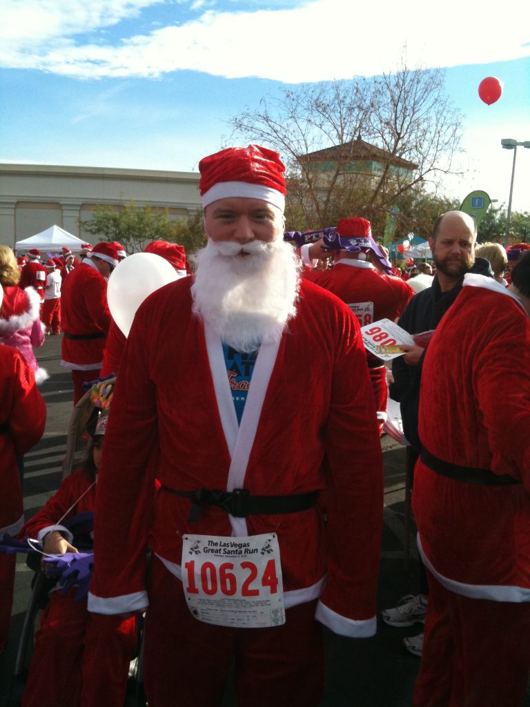The Great Santa Run was a blast. It was a run to break the Guinness Book of World Records for the largest gathering of running Santas. (I think.) We ended up breaking the record with over 13,000 people dressed as Santa participating. It was in the Las Vegas Town Square and there was about 8,000 more people there than I think it could reasonably support. We couldn’t even do the 5k ‘run’ because of the sheer amount of Santas. Plus the organization was terrible – nobody ever told us how many laps around the parking lot it should have been. Either way I can’t complain since it really wasn’t a race in the first place. Here are some photos – I should have taken much more.